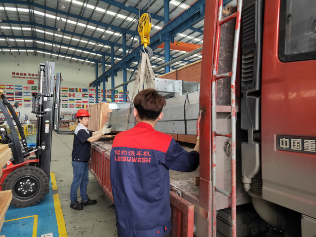 2019年4月20日,广西省柳州市林港物业服务有限公司订购的一台镭鹰S90风干型自动洗车机正在装车,预计5天时间设备可以抵达用户处。设备总重量1800Kg,10.8个立方,6件货。