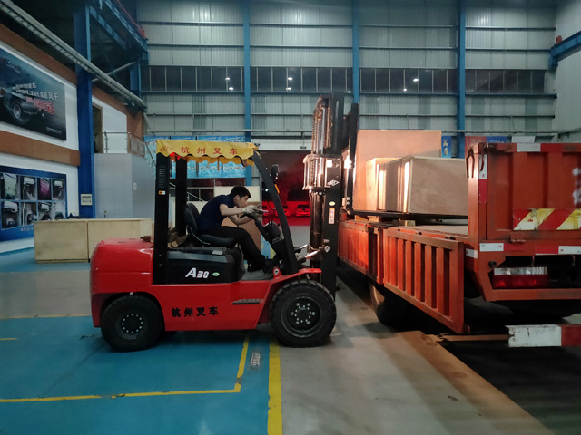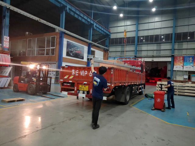 2019年5月22日晚,江苏省常熟市张总订购的一台镭豹360锐意型炫彩镀膜风干多功能洗护一体机正在装车,预计4天时间设备可以运抵用户处。设备重量2300kg,10个立方,7件货。