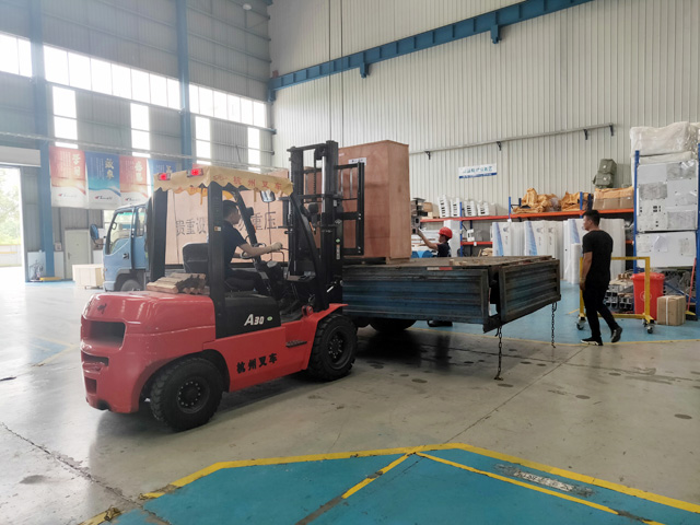 2019年5月27日,浙江省杭州市新东汽车修理厂订购的一台镭豹360极速型洗车机正在装车,设备直运用户处。设备总重量:2800Kg,10.5立方,7件货。