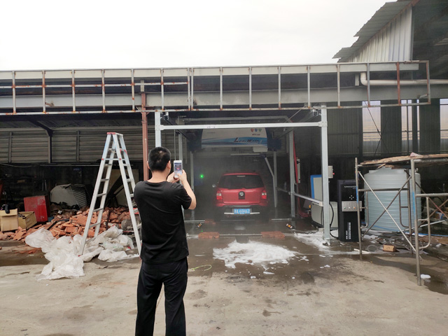 用户案例,镭豹360洗车机在浙江省杭州市新东汽车修理厂安装完成交付使用