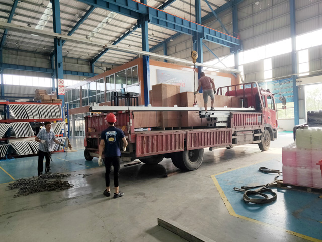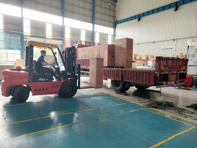 2019年6月11日,甘肃省嘉峪关三友汽车美容会所订购的一台镭豹360炫彩型洗车机正在装车,预计7天时间设备可以运抵用户处。设备总重量:2800Kg,10.5立方,7件货。