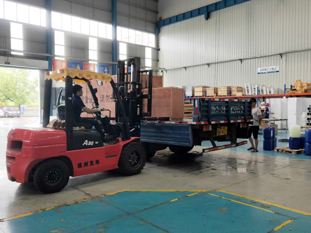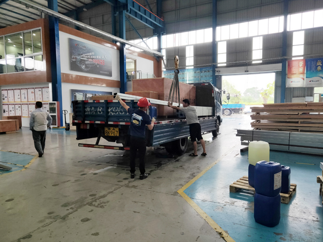 2019年6月13日,安徽省安庆市中国石化香茗山加油站订购的一台镭鹰S90标准型自动洗车机正在装车,预计4天时间设备可以运抵用户处。设备总重量1800Kg,10.8个立方,6件货。