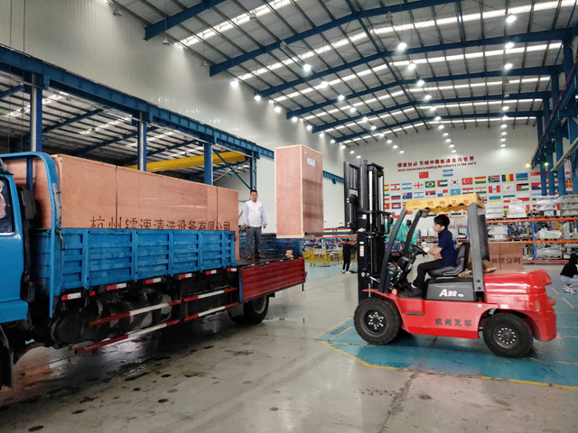 2019年6月13日,云南省曲靖市荀总订购的一台镭豹360炫彩型洗车机正在装车,预计6天时间设备可以运抵用户处。设备总重量:2800Kg,10.5立方,7件货。