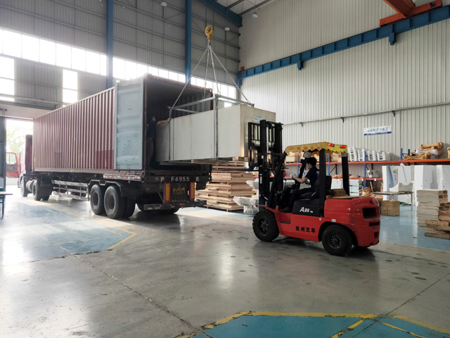 2019年6月16日,俄罗斯远东地区Alex公司再次订购的三台镭豹360炫彩型洗护一体机正在装车,设备将从宁波港装船出海运抵俄罗斯,设备总重量8400kg,36个立方,21件货。