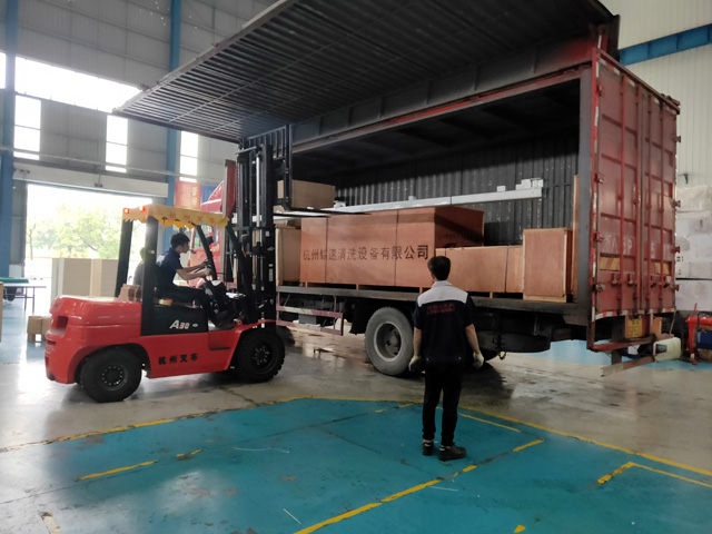 2019年6月18日,河南省安阳市车之宝汽车服务公司订购的一台镭豹360锐意型炫彩镀膜风干多功能洗护一体机正在装车,预计5天时间设备可以运抵用户处。设备重量2300kg,10个立方,6件货。