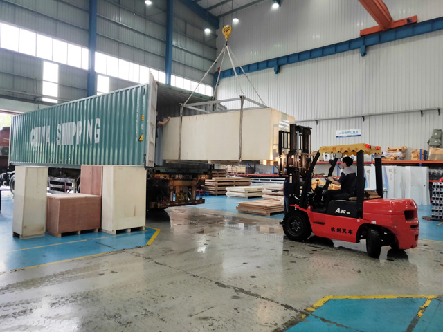 2019年6月21日,南美洲智利Induacr Ltda再次订购的两台镭豹360卓越型洗护一体机正在装车,设备将从宁波港装船出海运抵南美洲智利,设备总重量5600kg,26个立方,15件货。
