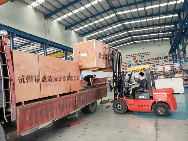 2019年6月22日,北京市朝阳区喜立德汽车服务公司订购的一台镭豹360锐意型炫彩镀膜风干多功能洗护一体机正在装车,预计5天时间设备可以运抵用户处。设备重量4600kg,20个立方,12件货。