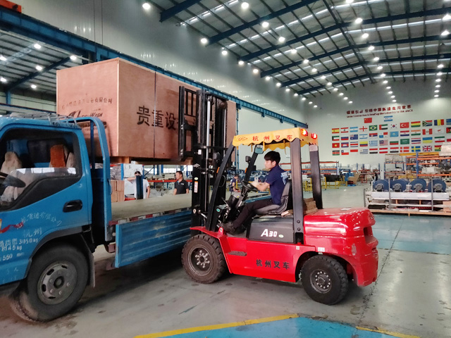 2019年6月24日,湖北省孝感市靓洁汽车服务中心订购的一台镭鹰S90标准型自动洗车机正在装车,预计4天时间设备可以运抵用户处。设备总重量1800Kg,10.8个立方,6件货。