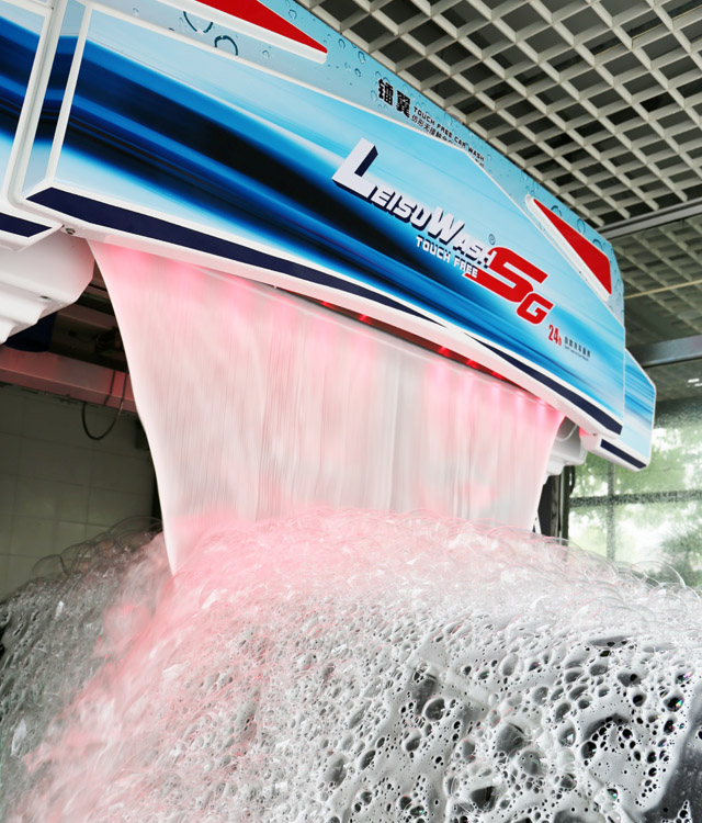 镭翼SG仿型无接触洗车机 洗的干净才是王道:镭翼SG旋转式高压喷头,可根据车辆轮廓自由旋转升降,从车的前脸、引擎盖、挡风玻璃、车顶部、后尾箱以及车尾部始终保持35CM的冲洗距离,对车身表面进行100kg高压冲洗,车身泥沙等附着物一冲而净。