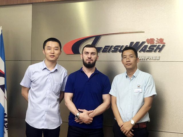 卓越品质畅销海外市场,2019年7月16号,俄罗斯车臣客户到访杭州,考察了镭速公司的产品质量和企业规模后,现场签订一台镭豹360炫彩型洗护一体机并支付美金。