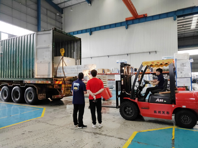 2019年7月22日,吉尔吉斯斯坦扎伊尔先生订购的两台镭豹360炫彩型洗护一体机正在装车,设备将从宁波港装船出海运抵吉尔吉斯斯坦,设备总重量5600kg,27个立方,16件货。