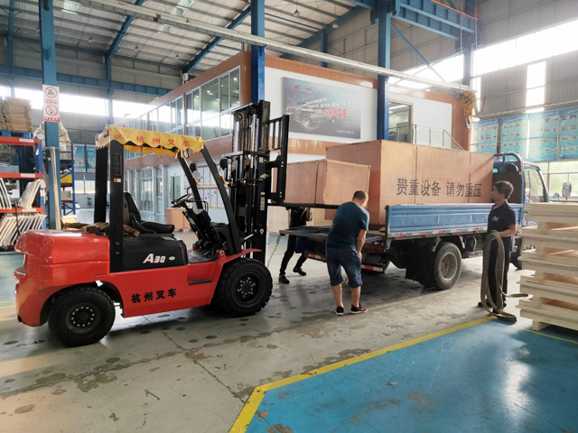2019年7月22日,黑龙江哈尔滨市春雨汽车修配厂订购的第六台镭鹰S90标准型自动洗车机正在装车,预计5天时间设备可以运抵用户处。设备总重量1800Kg,10.8个立方,6件货。