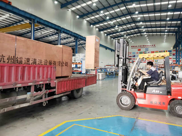2019年7月25日,海南省海口市屯昌县韦总订购的一台镭豹360炫彩型洗车机正在装车,预计6天时间设备可以运抵用户处。设备总重量:2800Kg,10.5立方,6件货。