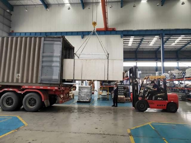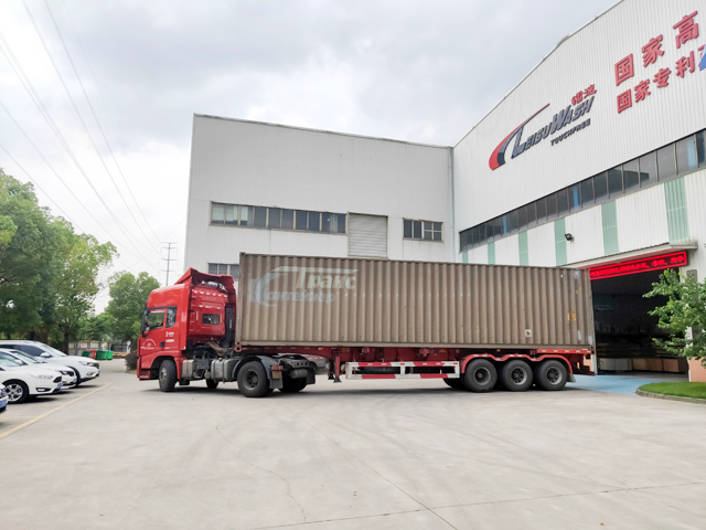 2019年7月27日,俄罗斯喀山3ООО Polnyy bak订购的一台镭豹360和一台镭翼SG仿形自动洗车机正在装车,设备将从宁波港装船出海运抵俄罗斯喀山,设备总重量6100kg,25个立方,16件货。