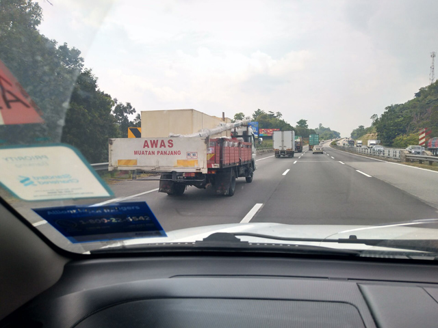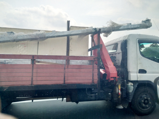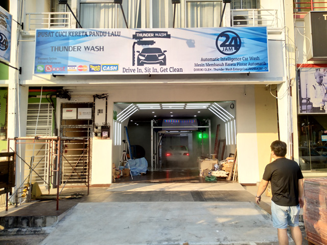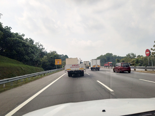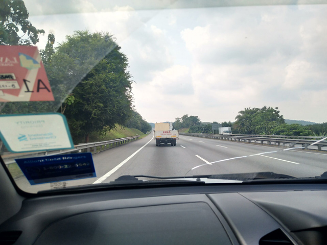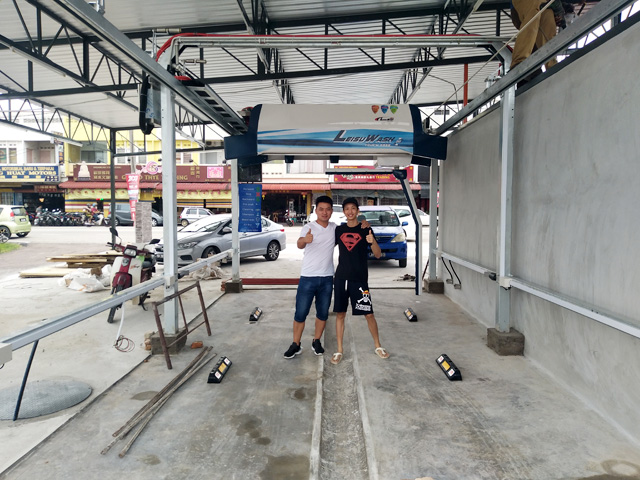 海外装机一路行,杭州镭速安装工程师7月份起一直在马来西亚安装中,从马来西亚昔加末县到民都鲁,再到新山安装完成后,今天又马不停蹄赶往首都吉隆坡,在去吉隆坡的高速公路上恰巧遇到运输镭豹360洗车机的车辆。