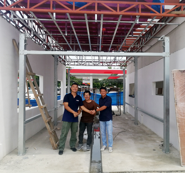 海外装机一路行,杭州镭速公司派出多路安装工程师在东南亚各国进行一路安装。2019年8月6日,安装工程师再次顺利抵达菲律宾,菲律宾Speedy Car Wash公司派人机场迎接,并派多名工人协助安装。