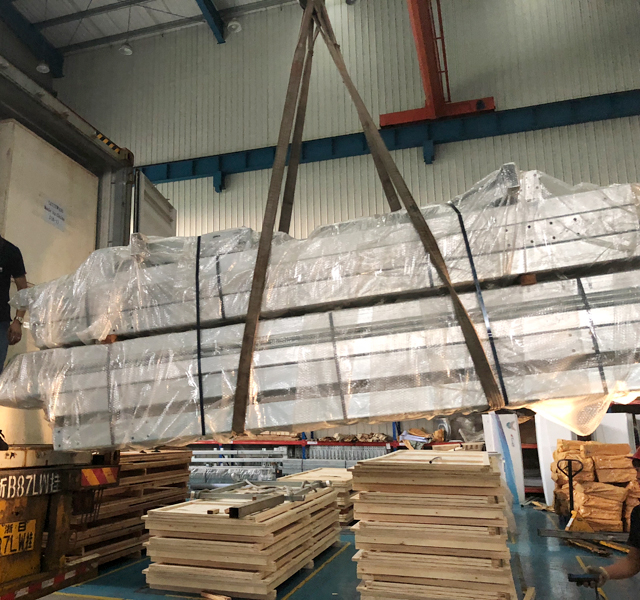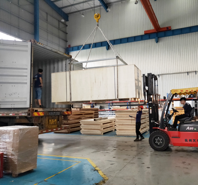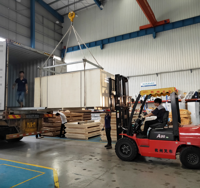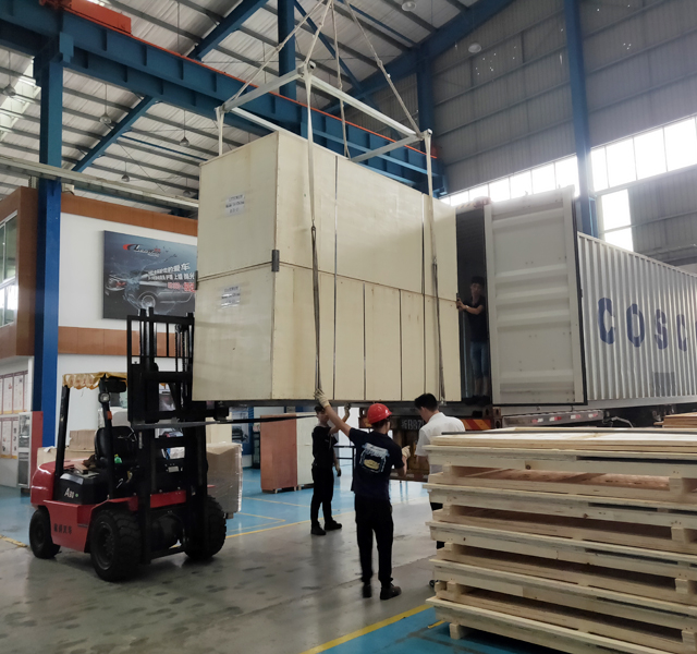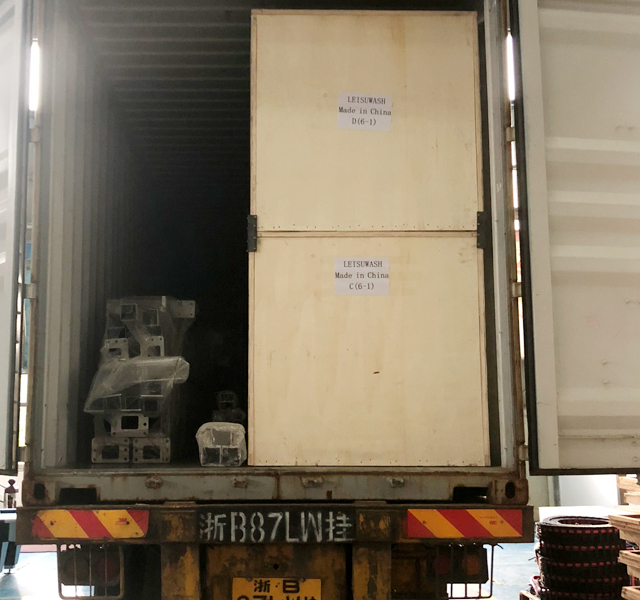 2019年8月27日,阿联酋SEDANA公司订购的三台镭鹰S90洗车机和一台镭豹360卓越型洗车机正在装车,设备将从宁波港装船出海运抵阿联酋,设备总重量7300kg,46个立方,22件货。