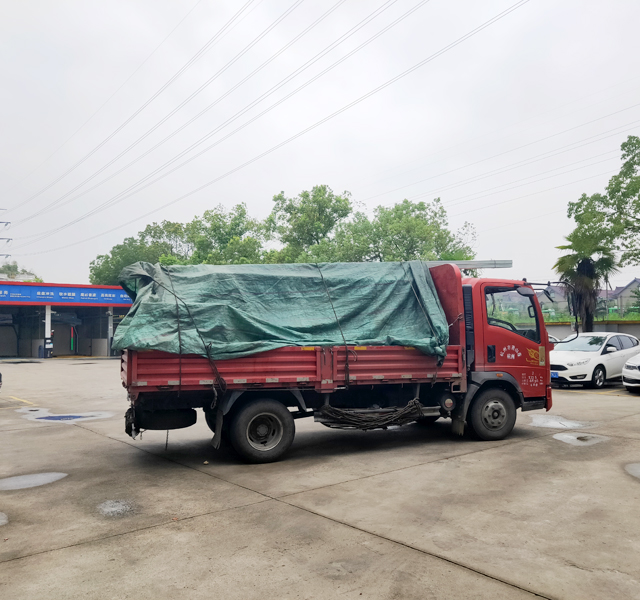 2019年9月3日,浙江省永康市特殊教育学校订购的一台镭鹰S90标准型自动洗车机正在装车,预计2天时间设备可以运抵用户处。设备总重量1800Kg,10.8个立方,6件货。
