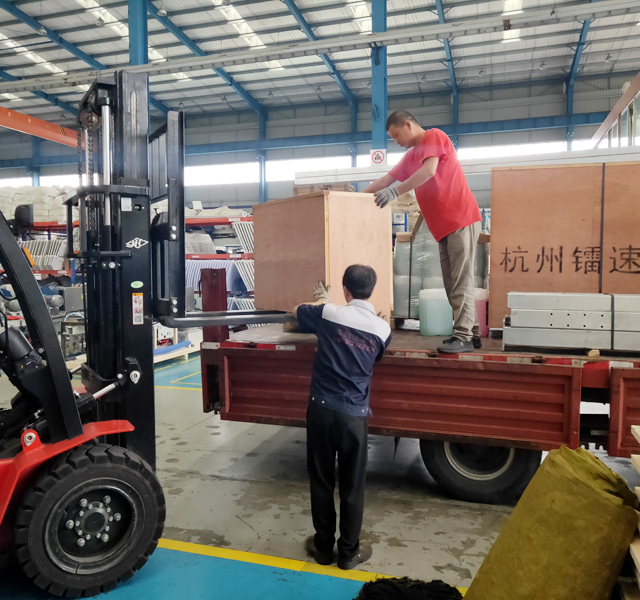 2019年9月3日,江苏省宿迁市泗阳县李总订购的一台镭鹰S90标准型自动洗车机正在装车,预计3天时间设备可以运抵用户处。设备总重量1800Kg,10.8个立方,6件货。