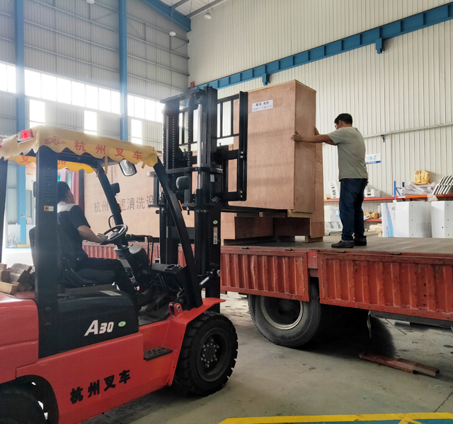 2019年9月9日,青海省格尔木市金达石油订购的一台镭豹360炫彩型洗车机正在装车,预计6天时间设备可以运抵用户处。设备总重量:2800Kg,10.5立方,6件货。