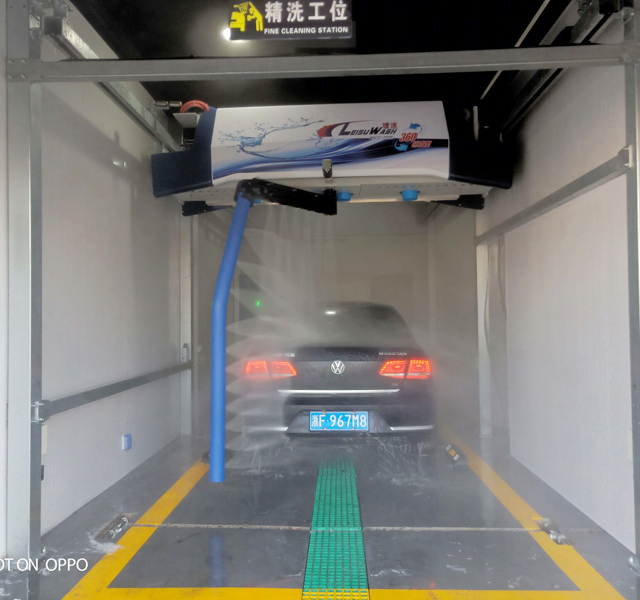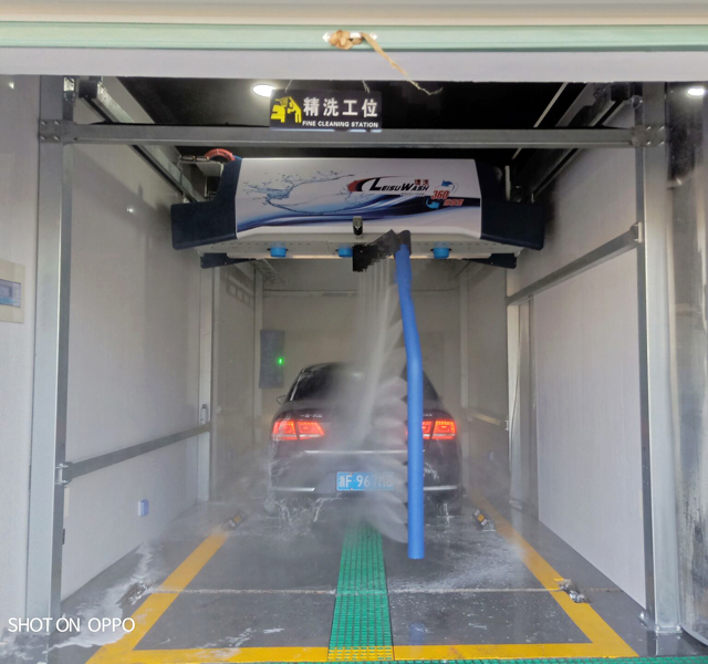 镭豹360锐意型多功能洗护一体,扫码洗车、高压底盘轮毂冲洗、液体自动配比、360度全车冲洗、高亮炫彩、镀膜上光、移动风干等。