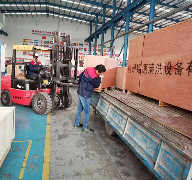 2019年12月2日,安徽省池州市东至县中国石化加油站订购的一台镭鹰S90标准型自动洗车机正在装车,预计4天时间设备可以运抵用户处。设备总重量1800Kg,10.8个立方,6件货。