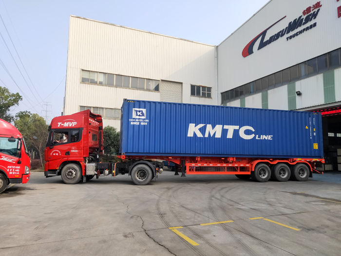 2020年12月12日,俄罗斯远东地区Alex公司再次订购的三台镭豹360炫彩型洗车机正在装车,设备将从上海港装船出海运抵远东地区。设备总重量7800Kg,37.8个立方,21件货。