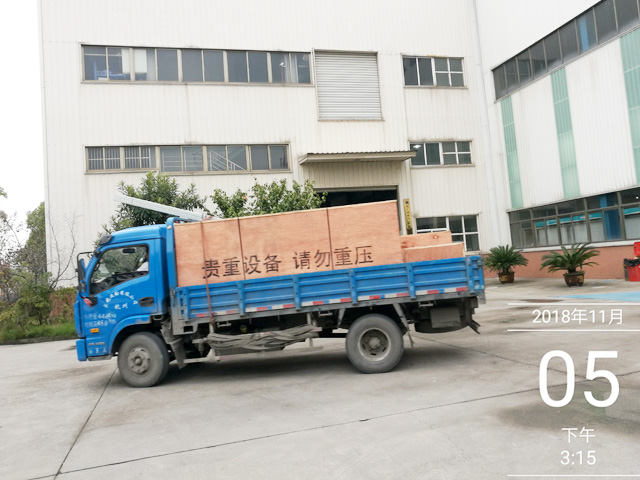 2018年11月5日,新疆喀什徐总订购的一台镭鹰S90标准型电脑洗车机正在装车,预计7天时间设备可以抵达用户处。设备总重量1500Kg,7个立方,5件货。