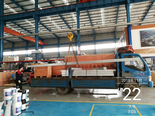 2018年11月22日,湖南省衡阳市衡东县日升加油站订购的一台镭鹰S90风干型电脑洗车机正在装车,预计5天时间设备可以抵达用户处。设备总重量1800Kg,10.8个立方,6件货。