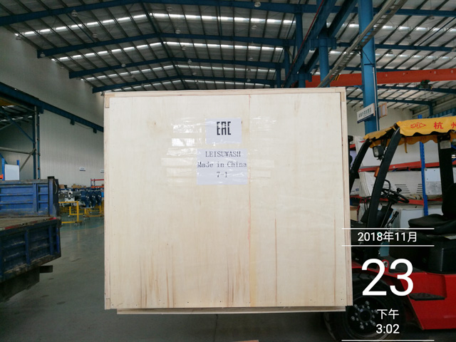 2018年11月23日,俄罗斯贝加尔湖Ruslan先生订购的一台镭豹360炫彩型电脑洗车机正在装车,设备将从宁波港装船出海运抵俄罗斯贝加尔湖。