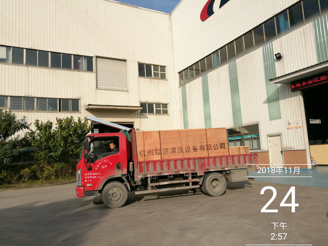 2018年11月24日,河南省平顶山市郏县普生加油站订购的一台镭鹰X1电脑洗车机正在装车,设备预计5天时间可以运抵用户处。设备总重量1320Kg,7.2个立方,4件货。